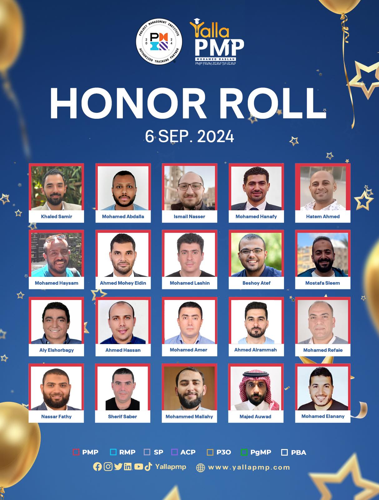 الحمد لله انه وفقني وكلل مجهودي بالنجاح ثانيا كل الشكر والفضل ل Mohamed Raslan عملاق ال pmp اللي خلي الماده العلميه حاجه كده بسيطه وسهله وممتعه 😍😍😍 وكل الشكر علي متابعته وسرعه تجاوبه وهتلاقيه كمان مسجلك عنده وهيقولك تعمل ايه بالظبط😍🌹